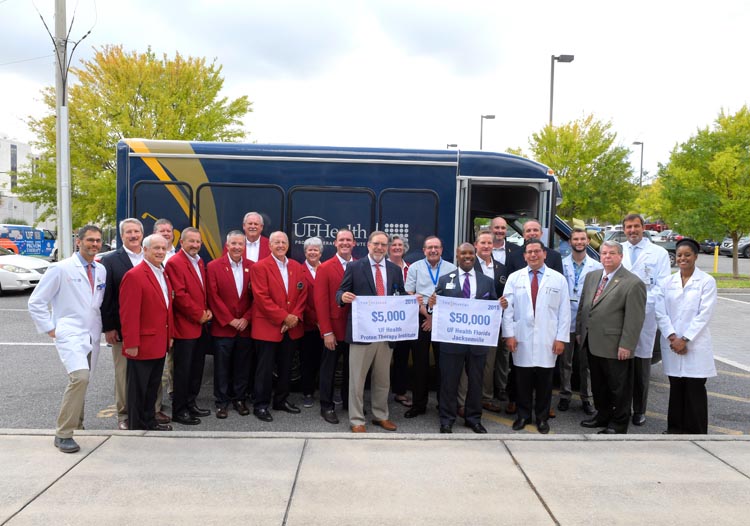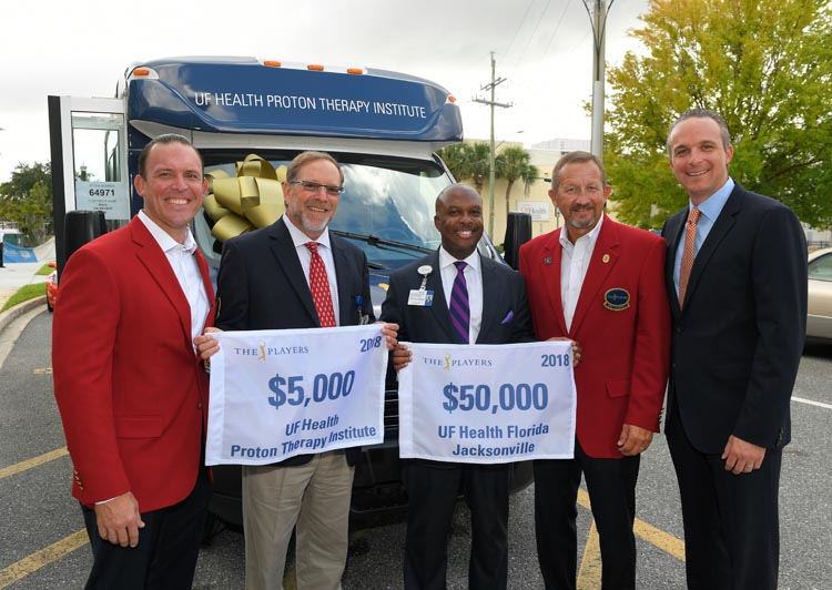 JACKSONVILLE, Fla. (Sept. 26, 2018) — A new 14-passenger shuttle bus for patient transportation and a $5,000 donation to enhance the social programming for adolescents and young adults who are being treated for cancer was received by the UF Health Proton Therapy Institute from THE PLAYERS Championship during the annual Red Coat Ride Out.